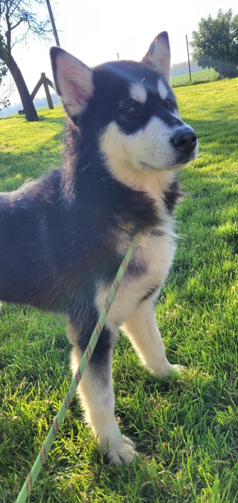 Athéna est une jeune femelle Malamute d’alaska de bientôt 10 mois, sociable et très afectueuse. Elle est vendue stérélisée.