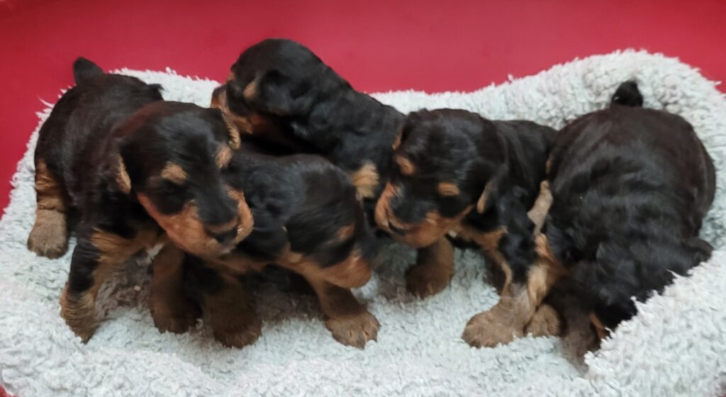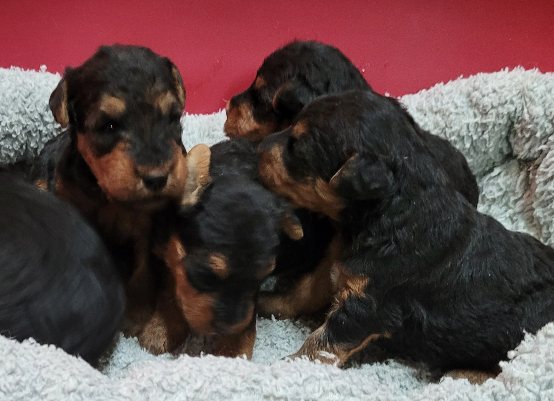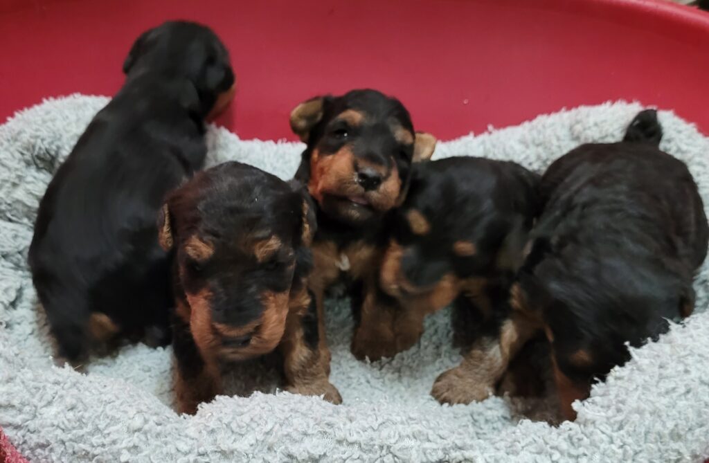 Nos chiots welsh terrier nés le 23/02/26 sont disponibles à la réservation. Un mâle et 3 femelles sont disponibles Ils seront vendus identifiés, primo-vaccinés, vermifugés et inscrits au LOF Mâle : 1350 E Femelle : 1450 E Et seront sevrés fin Avril Visible sur rendez-vous, du lundi au samedi N’hésitez pas à venir les voir