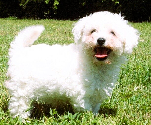 Petit chien joyeux, joueur, intelligent. Poil fin et frisé, blanc pur. Ne perd pas ses poils.